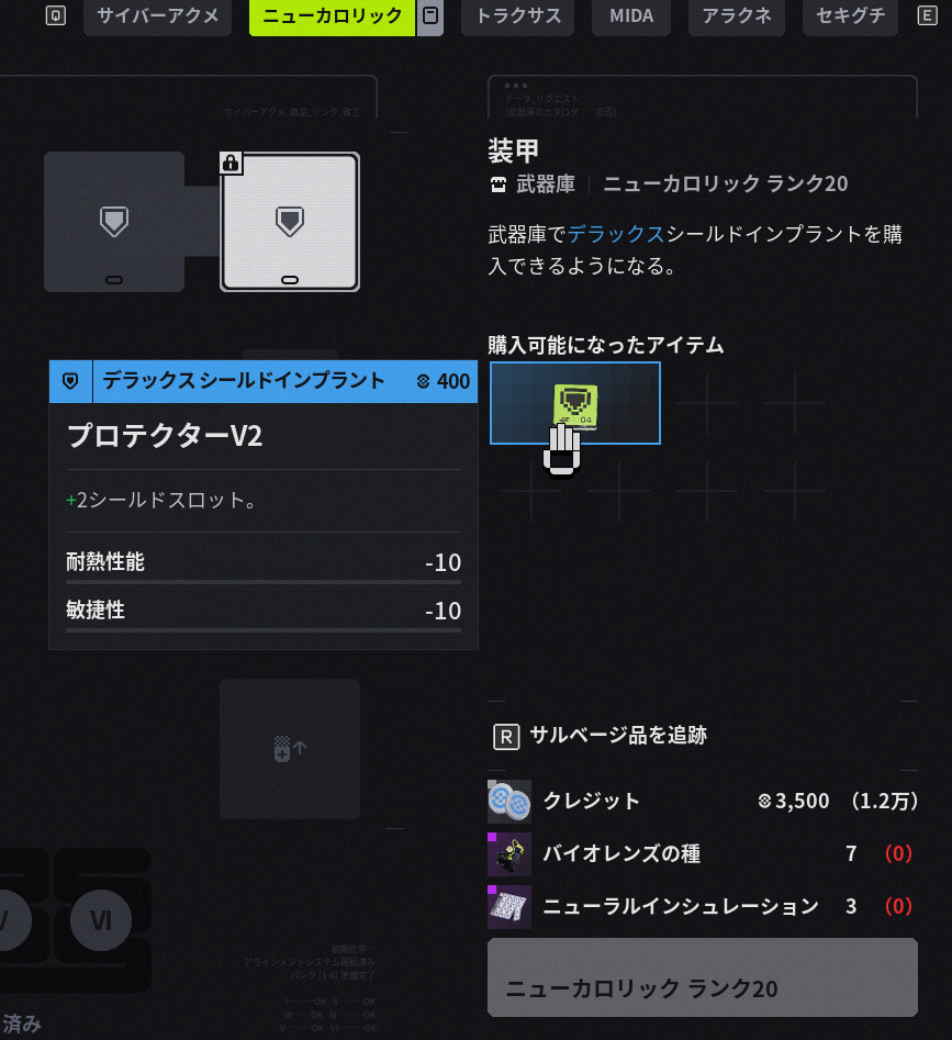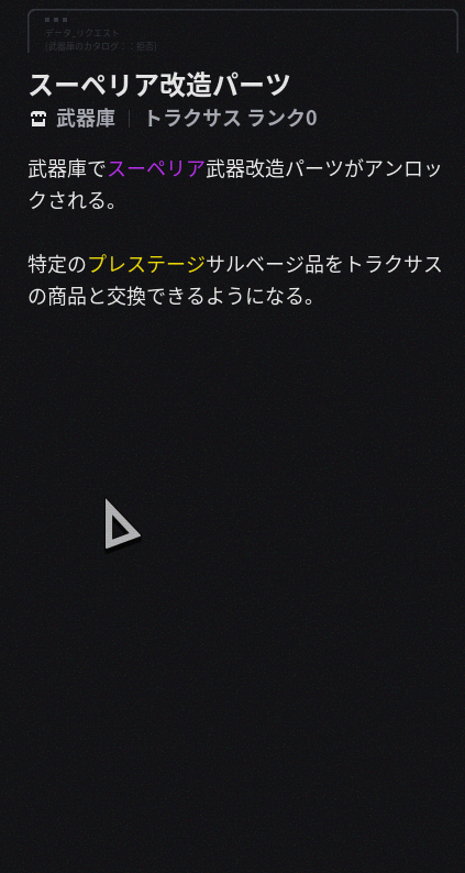 コントラクトを達成してレピュテーションを積み上げると、保管庫容量の拡張や高レアリティ装備の購入枠が解放されます。
