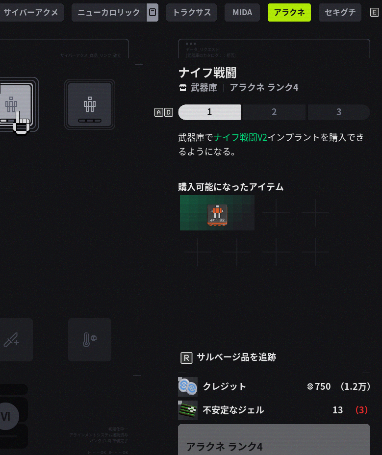 戦闘が有利になるようなアクションを獲得できます。(脱出時自動煙幕など)
