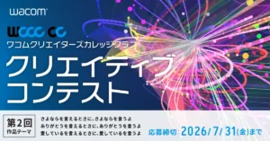 ペンタブレットでおなじみのワコムが、学生クリエイター向けのイラストコンテスト「WCCC CC(ワコム クリエイターズ カレッジ クラブ クリエイティブコンテスト)」の第2回を開催します。